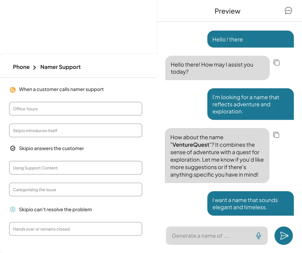 Skipio AI learns from your business not a script. Trained on your FAQs, policies, and live data, it speaks in your voice, answers with precision, and keeps improving automatically. It’s not software it’s your smartest employee.